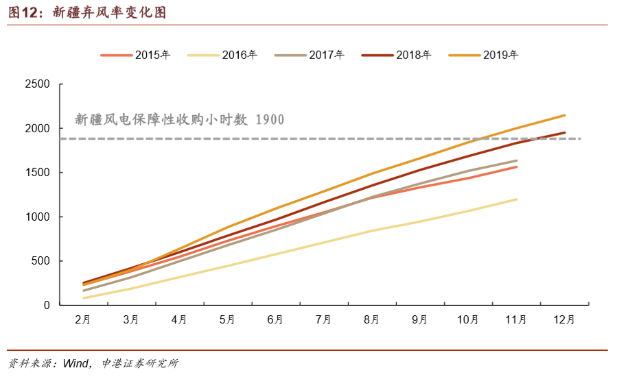 新疆有望于2020年脫離紅色區(qū)域,釋放風(fēng)電裝機(jī)需求。2019年新疆棄風(fēng)電量棄風(fēng)率14%,同比下降了9 pct,全年實現(xiàn)利用小時數(shù)2147小時,高于最低保障性收購小時數(shù)1900,因此2020年新疆有望退出紅色預(yù)警區(qū)域,釋放新增裝機(jī)需求。而甘肅雖然2019年棄風(fēng)率只有7.6%,但全年利用小時數(shù)1787小時,低于最低保障性小時數(shù)1800小時的要求,預(yù)計仍將位列紅色預(yù)警區(qū)域,不能進(jìn)行風(fēng)電項目建設(shè)。